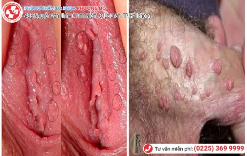- Cũng như nam giới sau thời gian ủ bệnh, xuất hiện các mụn cóc xung quanh cơ quan sinh dục, âm hộ, trong cổ tử cung.