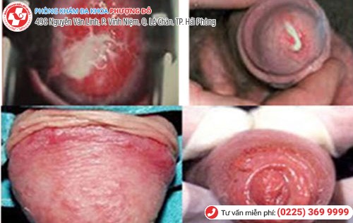 -Bao da quy đầu tấy đỏ, vùng da quy đầu cảm thấy ngứa, rát, xuất hiện chất dịch màu trắng, xuất hiện mụn đỏ vỡ ra gây lở loét, có mùi hôi. -Gây rối loạn chức năng tình dục, nhiễm trùng hoại tử quy đầu, vô sinh, liệt dương. |